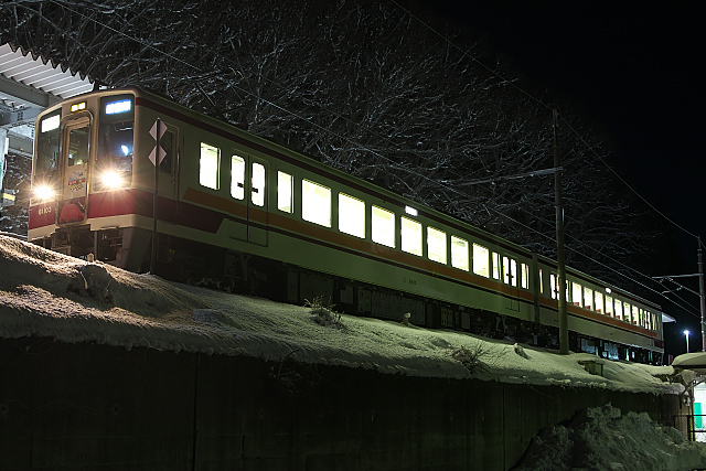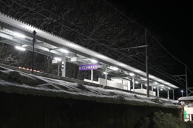 雪は降っていませんが、明かりがあるとホーム&雪が綺麗ですね。
